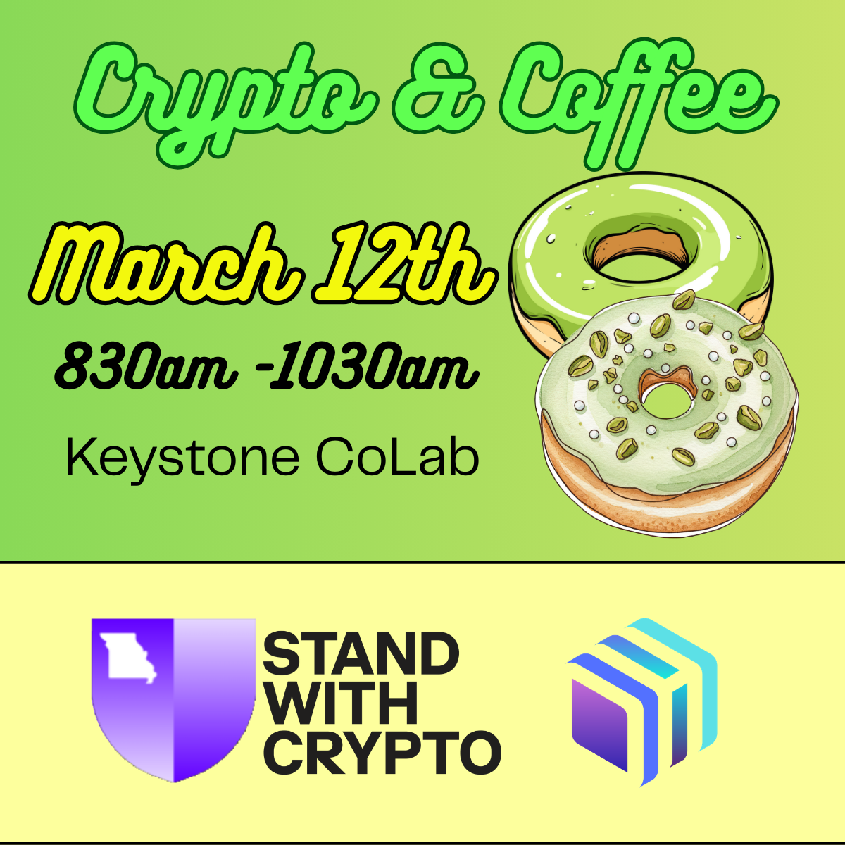 Morning crypto meetup at Keystone Co-Lab. Sharing space with other industry groups to spread the Stand With Crypto message. Refreshments provided.